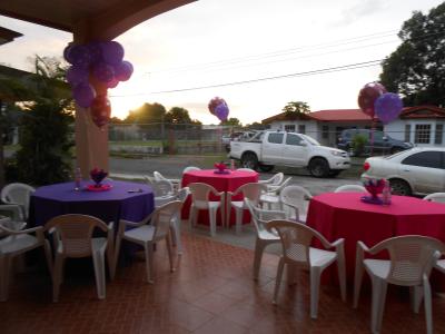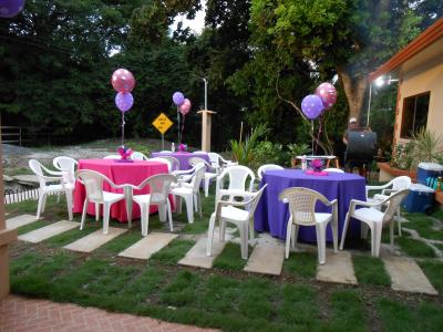 Nachdem die Tische dann fertig dekoriert waren kam Librada nach Hause und dann ging es in die Kirche, dort haben wir dann alle für Librada gesungen und wir haben noch weitere Partygäste getroffen, unter anderem Ramido, einen von meinen Klassenkameraden, worüber ich mich echt gefreut habe, weil er immer versucht sich mit mir zu unterhalten und auch relativ gut Englisch kann, also im Verhältnis zu den anderen. Von der Kirche aus sind wir dann zu Fuß nach Hause gegangen und die Feier ging langsam los, mit Roberto und Allan, Freunden von Librada hatten wir zwei sehr gute DJs :)